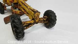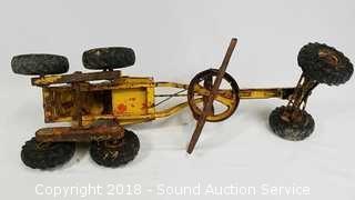 Rubber tires. Cannot find a makers mark, looks like an old Tonka toy. Approx. 24" L, 9" W, 7" H. The auctioneer shall not be responsible for the correct description, authenticity, genuineness of, estimated selling price of, or defect in any lot, and makes no warranty in connection therewith. No allowance will be made or sale set aside on account of any incorrectness, error in cataloging, or any imperfection not noted. No deduction will be allowed on damaged articles as all goods being exposed for public exhibition are sold “as is” and without recourse. All measurements and sizes - are approximate. CLAIMS - No claims will be allowed after goods are removed from premises. All lots - to be sold AS IS, WHERE IS. ALL SALES FINAL, WE DO NOT ACCEPT RETURNS.