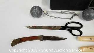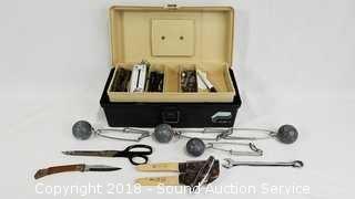 Lot #0199: Plano Tackle Box w/Lead Weights, Spring Scale & More
