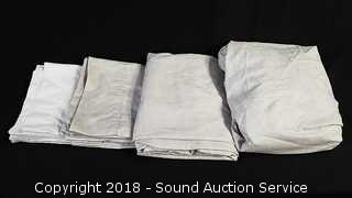 Includes: 1 flat, 1 fitted, 4 pillowcases. The auctioneer shall not be responsible for the correct description, authenticity, genuineness of, estimated selling price of, or defect in any lot, and makes no warranty in connection therewith. No allowance will be made or sale set aside on account of any incorrectness, error in cataloging, or any imperfection not noted. No deduction will be allowed on damaged articles as all goods being exposed for public exhibition are sold “as is” and without recourse. All measurements and sizes - are approximate. CLAIMS - No claims will be allowed after goods are removed from premises. All lots - to be sold AS IS, WHERE IS. ALL SALES FINAL, WE DO NOT ACCEPT RETURNS.