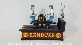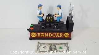 Lot #0121: Railroad Handcar Cast Iron Mechanical Coin Bank