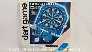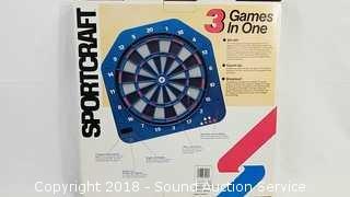 Like new condition, comes in original box. Missing one flight. The auctioneer shall not be responsible for the correct description, authenticity, genuineness of, estimated selling price of, or defect in any lot, and makes no warranty in connection therewith. No allowance will be made or sale set aside on account of any incorrectness, error in cataloging, or any imperfection not noted. No deduction will be allowed on damaged articles as all goods being exposed for public exhibition are sold “as is” and without recourse. All measurements and sizes - are approximate. CLAIMS - No claims will be allowed after goods are removed from premises. All lots - to be sold AS IS, WHERE IS. ALL SALES FINAL, WE DO NOT ACCEPT RETURNS.