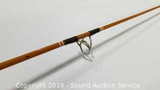 2 Piece Fiberglass Spinning Rod. The auctioneer shall not be responsible for the correct description, authenticity, genuineness of, estimated selling price of, or defect in any lot, and makes no warranty in connection therewith. No allowance will be made or sale set aside on account of any incorrectness, error in cataloging, or any imperfection not noted. No deduction will be allowed on damaged articles as all goods being exposed for public exhibition are sold “as is” and without recourse. All measurements and sizes - are approximate. CLAIMS - No claims will be allowed after goods are removed from premises. All lots - to be sold AS IS, WHERE IS. ALL SALES FINAL, WE DO NOT ACCEPT RETURNS.