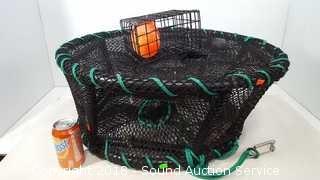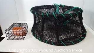 Lot #0142: Steel Frame Nylon Mesh Crab Trap & Bait Box
