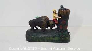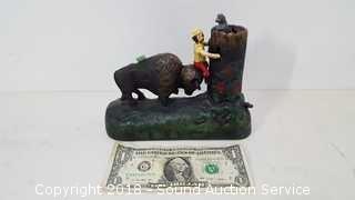Lot #0125: Vtg. Bull Logger Cast Iron Mechanical Coin Bank