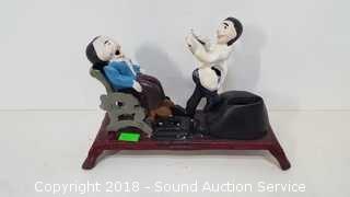 Lot #0123: Vtg. Pulling Teeth Cast Iron Mechanical Coin Bank