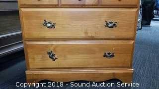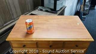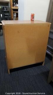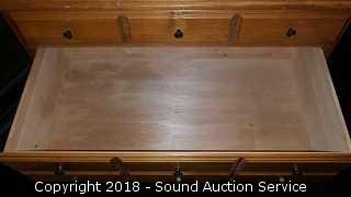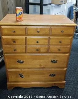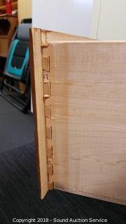 Dovetail construction. Approx. 34" H, 29-1/2" W, 17" D. The auctioneer shall not be responsible for the correct description, authenticity, genuineness of, estimated selling price of, or defect in any lot, and makes no warranty in connection therewith. No allowance will be made or sale set aside on account of any incorrectness, error in cataloging, or any imperfection not noted. No deduction will be allowed on damaged articles as all goods being exposed for public exhibition are sold “as is” and without recourse. All measurements and sizes - are approximate. CLAIMS - No claims will be allowed after goods are removed from premises. All lots - to be sold AS IS, WHERE IS. ALL SALES FINAL, WE DO NOT ACCEPT RETURNS.