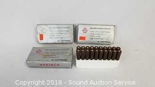 All in original boxes. Lead core bullet, steel case, noncorrosive. The auctioneer shall not be responsible for the correct description, authenticity, genuineness of, estimated selling price of, or defect in any lot, and makes no warranty in connection therewith. No allowance will be made or sale set aside on account of any incorrectness, error in cataloging, or any imperfection not noted. No deduction will be allowed on damaged articles as all goods being exposed for public exhibition are sold “as is” and without recourse. All measurements and sizes - are approximate. CLAIMS - No claims will be allowed after goods are removed from premises. All lots - to be sold AS IS, WHERE IS. ALL SALES FINAL, WE DO NOT ACCEPT RETURNS.