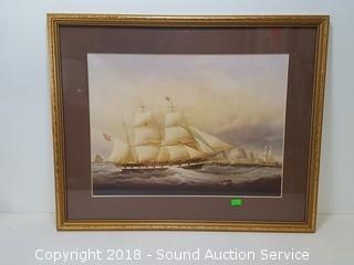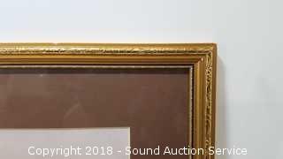 Unknown artist. Framed with glass. Approx. 21" x 17". The auctioneer shall not be responsible for the correct description, authenticity, genuineness of, estimated selling price of, or defect in any lot, and makes no warranty in connection therewith. No allowance will be made or sale set aside on account of any incorrectness, error in cataloging, or any imperfection not noted. No deduction will be allowed on damaged articles as all goods being exposed for public exhibition are sold “as is” and without recourse. All measurements and sizes - are approximate. CLAIMS - No claims will be allowed after goods are removed from premises. All lots - to be sold AS IS, WHERE IS. ALL SALES FINAL, WE DO NOT ACCEPT RETURNS.
