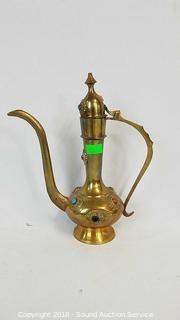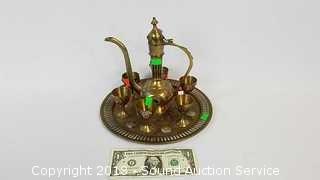 Lot #0302: Jeweled Turkish Solid Brass Tea Set