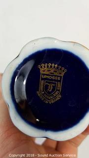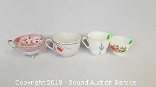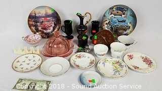 Includes: Various Bone China Saucers, Tea Cups, Limoges French Vase, Pink Cheese Plate, Collectors Plates, Stone Quartz Clock, Black Porcelain Mugs & Sugar Dish. The auctioneer shall not be responsible for the correct description, authenticity, genuineness of, estimated selling price of, or defect in any lot, and makes no warranty in connection therewith. No allowance will be made or sale set aside on account of any incorrectness, error in cataloging, or any imperfection not noted. No deduction will be allowed on damaged articles as all goods being exposed for public exhibition are sold “as is” and without recourse. All measurements and sizes - are approximate. CLAIMS - No claims will be allowed after goods are removed from premises. All lots - to be sold AS IS, WHERE IS. ALL SALES FINAL, WE DO NOT ACCEPT RETURNS.