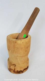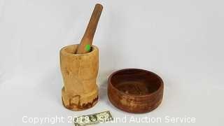 Lot #0217: Large Solid Wood Mortar & Pestle w/Bread Bowl
