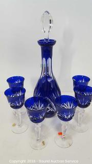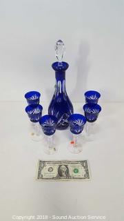 Lot #0055: Nachtmann 24% Cobalt Crystal Decanter & Cordials
