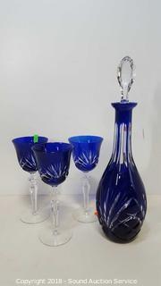 Lot #0056: Nachtmann Cobalt Crystal Decanter & Wine Glasses