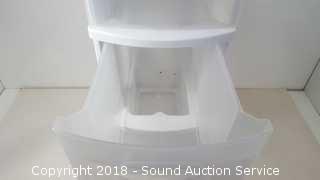 On casters. Approx. 24" H, 13-1/2" D, 9" W. The auctioneer shall not be responsible for the correct description, authenticity, genuineness of, estimated selling price of, or defect in any lot, and makes no warranty in connection therewith. No allowance will be made or sale set aside on account of any incorrectness, error in cataloging, or any imperfection not noted. No deduction will be allowed on damaged articles as all goods being exposed for public exhibition are sold “as is” and without recourse. All measurements and sizes - are approximate. CLAIMS - No claims will be allowed after goods are removed from premises. All lots - to be sold AS IS, WHERE IS. ALL SALES FINAL, WE DO NOT ACCEPT RETURNS.