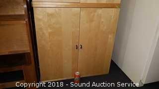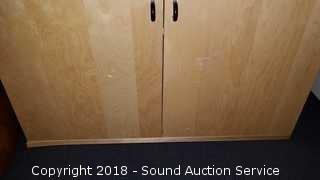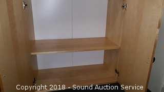 Has 1 adjustable shelf. The corners have been concave rounded. Approx. 32" H, 32" W, 15-1/2" D. The auctioneer shall not be responsible for the correct description, authenticity, genuineness of, estimated selling price of, or defect in any lot, and makes no warranty in connection therewith. No allowance will be made or sale set aside on account of any incorrectness, error in cataloging, or any imperfection not noted. No deduction will be allowed on damaged articles as all goods being exposed for public exhibition are sold “as is” and without recourse. All measurements and sizes - are approximate. CLAIMS - No claims will be allowed after goods are removed from premises. All lots - to be sold AS IS, WHERE IS. ALL SALES FINAL, WE DO NOT ACCEPT RETURNS.