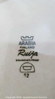One is an Arabia Ruija. The auctioneer shall not be responsible for the correct description, authenticity, genuineness of, estimated selling price of, or defect in any lot, and makes no warranty in connection therewith. No allowance will be made or sale set aside on account of any incorrectness, error in cataloging, or any imperfection not noted. No deduction will be allowed on damaged articles as all goods being exposed for public exhibition are sold “as is” and without recourse. All measurements and sizes - are approximate. CLAIMS - No claims will be allowed after goods are removed from premises. All lots - to be sold AS IS, WHERE IS. ALL SALES FINAL, WE DO NOT ACCEPT RETURNS.