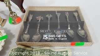 Lot #0356: Silver Plate Collectors Spoons & Plate