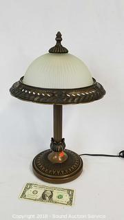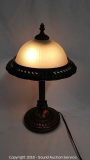Takes 2 smaller chandelier size bulbs. Approx. 17" H, 11" diameter. The auctioneer shall not be responsible for the correct description, authenticity, genuineness of, estimated selling price of, or defect in any lot, and makes no warranty in connection therewith. No allowance will be made or sale set aside on account of any incorrectness, error in cataloging, or any imperfection not noted. No deduction will be allowed on damaged articles as all goods being exposed for public exhibition are sold “as is” and without recourse. All measurements and sizes - are approximate. CLAIMS - No claims will be allowed after goods are removed from premises. All lots - to be sold AS IS, WHERE IS. ALL SALES FINAL, WE DO NOT ACCEPT RETURNS.