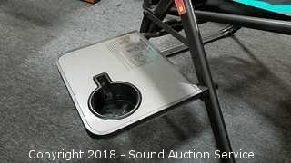 Has built in pillow and pull out side table with cup holder. The auctioneer shall not be responsible for the correct description, authenticity, genuineness of, estimated selling price of, or defect in any lot, and makes no warranty in connection therewith. No allowance will be made or sale set aside on account of any incorrectness, error in cataloging, or any imperfection not noted. No deduction will be allowed on damaged articles as all goods being exposed for public exhibition are sold “as is” and without recourse. All measurements and sizes - are approximate. CLAIMS - No claims will be allowed after goods are removed from premises. All lots - to be sold AS IS, WHERE IS. ALL SALES FINAL, WE DO NOT ACCEPT RETURNS.