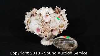 Lot #0191: Unique Seashell Sculpture & Clamshell Dish