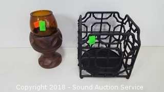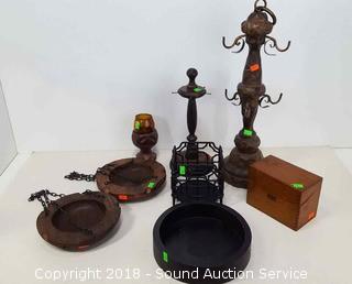 Includes: Necklace Hanger, Recipe Box, 17" Wooden Hanging Plant Holder?, Metal Candle Holder, and more. The auctioneer shall not be responsible for the correct description, authenticity, genuineness of, estimated selling price of, or defect in any lot, and makes no warranty in connection therewith. No allowance will be made or sale set aside on account of any incorrectness, error in cataloging, or any imperfection not noted. No deduction will be allowed on damaged articles as all goods being exposed for public exhibition are sold “as is” and without recourse. All measurements and sizes - are approximate. CLAIMS - No claims will be allowed after goods are removed from premises. All lots - to be sold AS IS, WHERE IS. ALL SALES FINAL, WE DO NOT ACCEPT RETURNS.