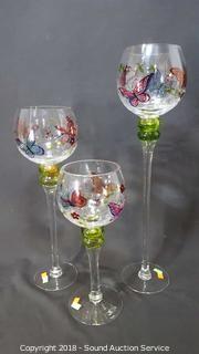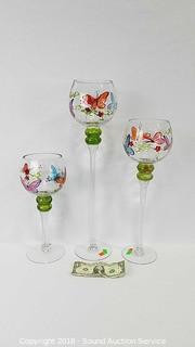 Lot #0244: 3 Graduating Hand Painted Butterfly Candle Holders