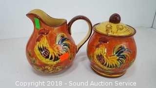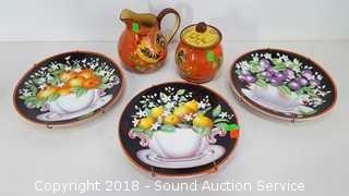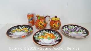 Lot #0041: Fruit Decor Plates, Rooster Cream & Sugar