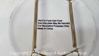 Plates come with hangers. The auctioneer shall not be responsible for the correct description, authenticity, genuineness of, estimated selling price of, or defect in any lot, and makes no warranty in connection therewith. No allowance will be made or sale set aside on account of any incorrectness, error in cataloging, or any imperfection not noted. No deduction will be allowed on damaged articles as all goods being exposed for public exhibition are sold “as is” and without recourse. All measurements and sizes - are approximate. CLAIMS - No claims will be allowed after goods are removed from premises. All lots - to be sold AS IS, WHERE IS. ALL SALES FINAL, WE DO NOT ACCEPT RETURNS.