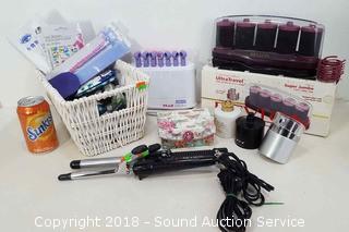 Includes: Curling Irons, Rollers, Perfume, Small Rubber Bands, Nail Stickers, Eyelashes, Nail Polish, NIP Bracelets, and more. The auctioneer shall not be responsible for the correct description, authenticity, genuineness of, estimated selling price of, or defect in any lot, and makes no warranty in connection therewith. No allowance will be made or sale set aside on account of any incorrectness, error in cataloging, or any imperfection not noted. No deduction will be allowed on damaged articles as all goods being exposed for public exhibition are sold “as is” and without recourse. All measurements and sizes - are approximate. CLAIMS - No claims will be allowed after goods are removed from premises. All lots - to be sold AS IS, WHERE IS. ALL SALES FINAL, WE DO NOT ACCEPT RETURNS.