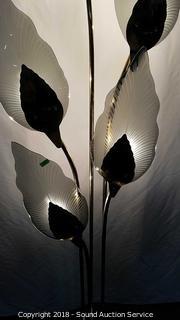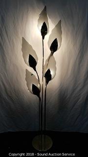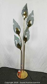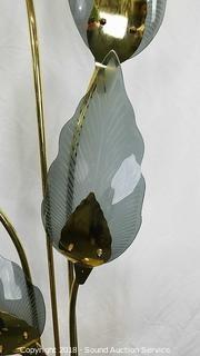 Lot #0258: Retro Brass & Glass 5-Leaf Floor Lamp