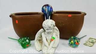 Lot #0254: Water Globes, Pottery Planters & Stone Angel