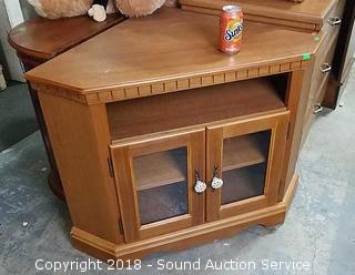 Lot #0120: Wood Grain Finish Corner Media Cabinet
