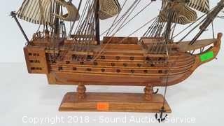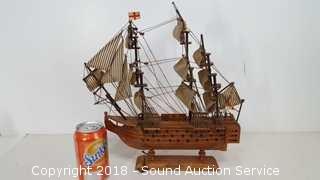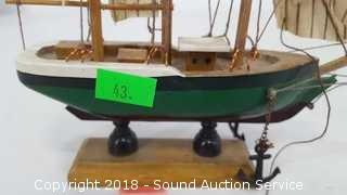 A couple broken pieces on the larger ship. Approx. 6" x 6" and 14" x 13". The auctioneer shall not be responsible for the correct description, authenticity, genuineness of, estimated selling price of, or defect in any lot, and makes no warranty in connection therewith. No allowance will be made or sale set aside on account of any incorrectness, error in cataloging, or any imperfection not noted. No deduction will be allowed on damaged articles as all goods being exposed for public exhibition are sold “as is” and without recourse. All measurements and sizes - are approximate. CLAIMS - No claims will be allowed after goods are removed from premises. All lots - to be sold AS IS, WHERE IS. ALL SALES FINAL, WE DO NOT ACCEPT RETURNS.