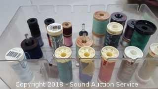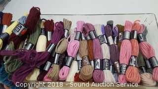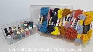 Lot #0077: 2 Plastic Totes w/Thread & Needlepoint Wool