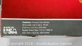 Crystal clear shrink film. 42" x 62". The auctioneer shall not be responsible for the correct description, authenticity, genuineness of, estimated selling price of, or defect in any lot, and makes no warranty in connection therewith. No allowance will be made or sale set aside on account of any incorrectness, error in cataloging, or any imperfection not noted. No deduction will be allowed on damaged articles as all goods being exposed for public exhibition are sold “as is” and without recourse. All measurements and sizes - are approximate. CLAIMS - No claims will be allowed after goods are removed from premises. All lots - to be sold AS IS, WHERE IS. ALL SALES FINAL, WE DO NOT ACCEPT RETURNS.