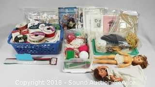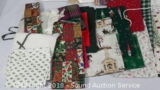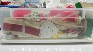 Lot #0120: 3 Totes w/Various Sewing Fabric, Edging, Patterns