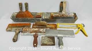 Includes: Drywall Trays, Spreaders, Leather Tool Bag. The auctioneer shall not be responsible for the correct description, authenticity, genuineness of, estimated selling price of, or defect in any lot, and makes no warranty in connection therewith. No allowance will be made or sale set aside on account of any incorrectness, error in cataloging, or any imperfection not noted. No deduction will be allowed on damaged articles as all goods being exposed for public exhibition are sold “as is” and without recourse. All measurements and sizes - are approximate. CLAIMS - No claims will be allowed after goods are removed from premises. All lots - to be sold AS IS, WHERE IS. ALL SALES FINAL, WE DO NOT ACCEPT RETURNS.