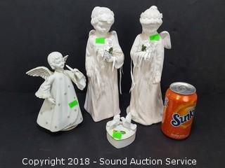 Lot #0065: Ceramic Angel Figurines & Trinket Box