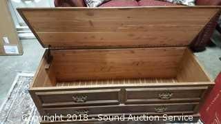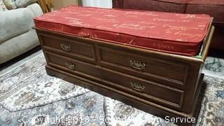 Lot #0024: Fabulous Oak Cedar Lined Chest w/Padded Bench Top