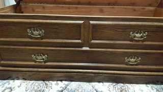 Approx. 18" H, 47-1/2" L, 17-3/4" D. Has 2-1/2" pad. The auctioneer shall not be responsible for the correct description, authenticity, genuineness of, estimated selling price of, or defect in any lot, and makes no warranty in connection therewith. No allowance will be made or sale set aside on account of any incorrectness, error in cataloging, or any imperfection not noted. No deduction will be allowed on damaged articles as all goods being exposed for public exhibition are sold “as is” and without recourse. All measurements and sizes - are approximate. CLAIMS - No claims will be allowed after goods are removed from premises. All lots - to be sold AS IS, WHERE IS. ALL SALES FINAL, WE DO NOT ACCEPT RETURNS.