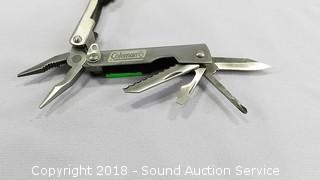 Includes: Coleman Pocket Size Multi-Tool and Mt. Rushmore Swiss Army Style Knife. Wave multi-tool comes with sheath. The auctioneer shall not be responsible for the correct description, authenticity, genuineness of, estimated selling price of, or defect in any lot, and makes no warranty in connection therewith. No allowance will be made or sale set aside on account of any incorrectness, error in cataloging, or any imperfection not noted. No deduction will be allowed on damaged articles as all goods being exposed for public exhibition are sold “as is” and without recourse. All measurements and sizes - are approximate. CLAIMS - No claims will be allowed after goods are removed from premises. All lots - to be sold AS IS, WHERE IS. ALL SALES FINAL, WE DO NOT ACCEPT RETURNS.