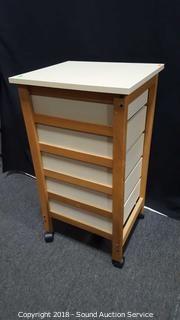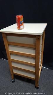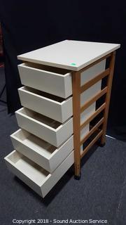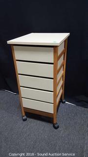 Lot #0040: Modern White & Wood Tone 5-Drawer Rolling Cart