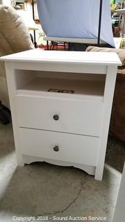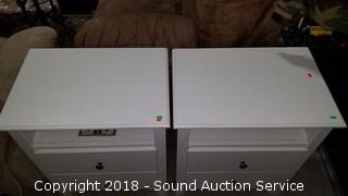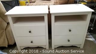 Lot #0173: Pair of White Modern 2-Drawer Night Stands