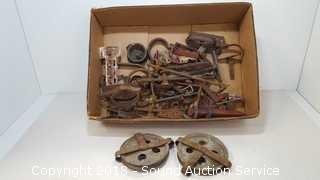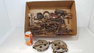 Includes: Pully's, Gate Latches, Hinges, Tools, and more. The auctioneer shall not be responsible for the correct description, authenticity, genuineness of, estimated selling price of, or defect in any lot, and makes no warranty in connection therewith. No allowance will be made or sale set aside on account of any incorrectness, error in cataloging, or any imperfection not noted. No deduction will be allowed on damaged articles as all goods being exposed for public exhibition are sold “as is” and without recourse. All measurements and sizes - are approximate. CLAIMS - No claims will be allowed after goods are removed from premises. All lots - to be sold AS IS, WHERE IS. ALL SALES FINAL, WE DO NOT ACCEPT RETURNS.