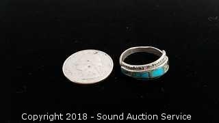 Lot #0221: Sterling Silver & Turquoise Ring - Size 8.5