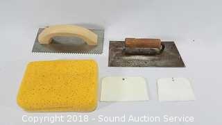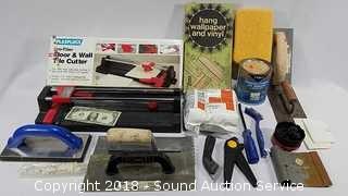 Lot #0143: Tile Cutter w/Tile Tools & Supplies