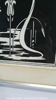 Framed and matted with glass. Some slight discoloration on the paper. Approx. 20-1/2" W, 27-1/2" H. The auctioneer shall not be responsible for the correct description, authenticity, genuineness of, estimated selling price of, or defect in any lot, and makes no warranty in connection therewith. No allowance will be made or sale set aside on account of any incorrectness, error in cataloging, or any imperfection not noted. No deduction will be allowed on damaged articles as all goods being exposed for public exhibition are sold “as is” and without recourse. All measurements and sizes - are approximate. CLAIMS - No claims will be allowed after goods are removed from premises. All lots - to be sold AS IS, WHERE IS. ALL SALES FINAL, WE DO NOT ACCEPT RETURNS.
