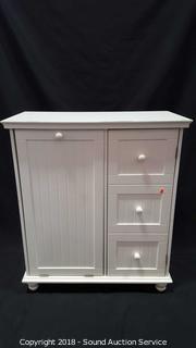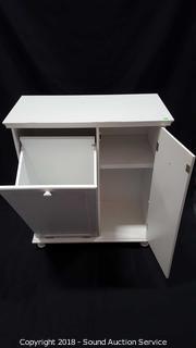 Lot #0028: White Modern Hidden Hamper Bathroom Cabinet