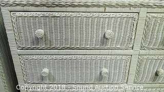 Lot #0147: White Wicker Woven 6-Drawer Dresser