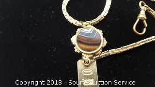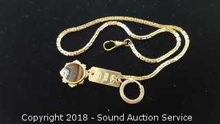 Monogrammed and stone setting. Mostly dissolved with a 10K acid test, left gold flakes. Approx. 18" L. Total weight: 21.6 grams. ATTN: We are not jewelry experts or appraisers, please use your own judgment when bidding!